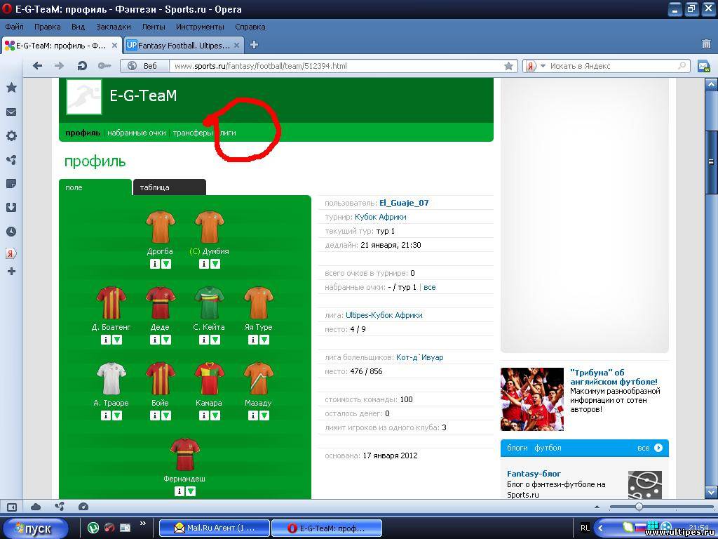 Fantasy Football. Ultipes - кубок Африки.