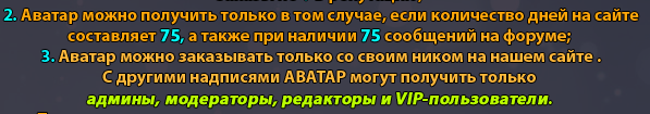 | vados19, оу, а на авамейкеров лимит? У нас тут их думаю много И Trance с SkyBarca делают авы дольше, ну по крайней мере выкладывать на УП и делать остальным на УП, стали раньше чем Ruslan_NN )) И, кстати, если я еще в состав авамейкеров вхожу, то обнови и мои авы, т.к. ща делаем 120х120, а примеры 140х140